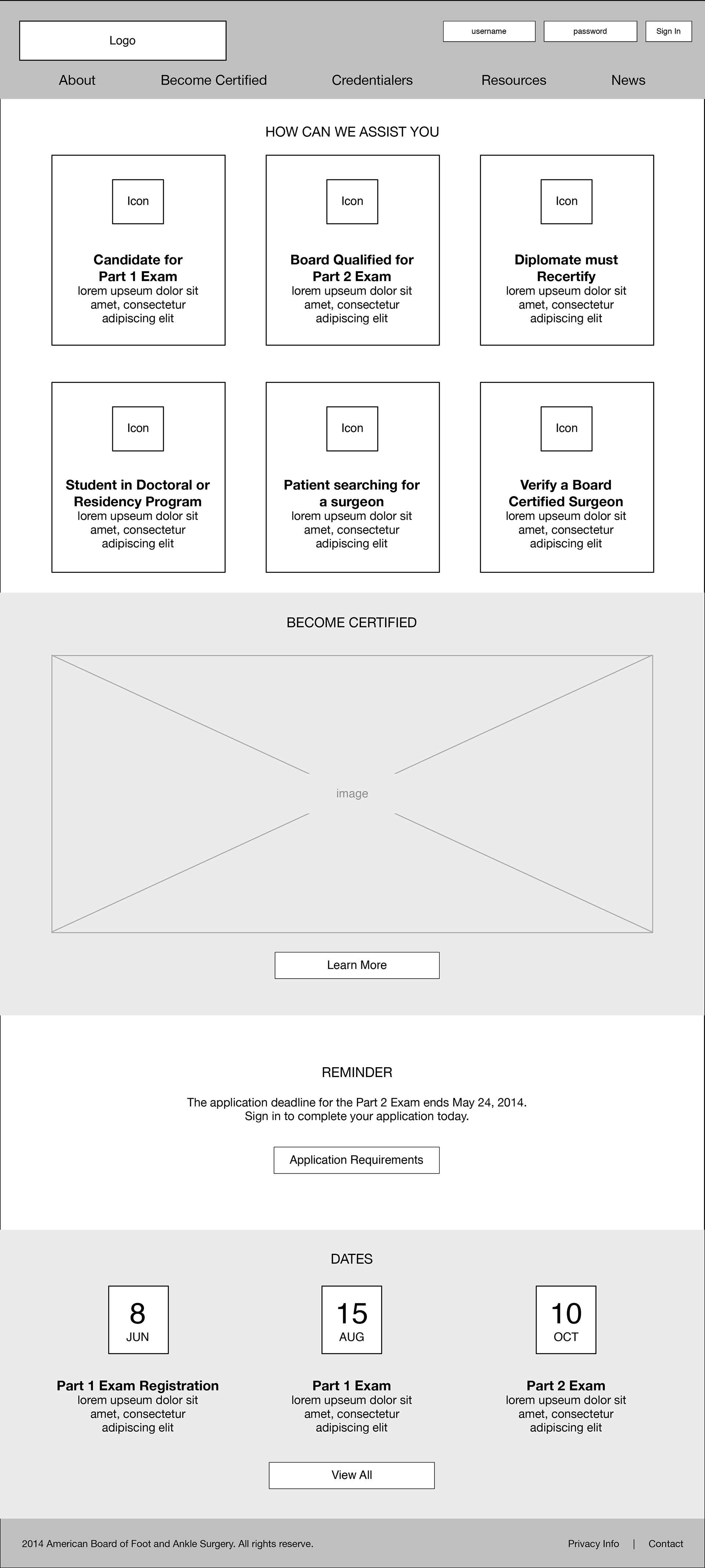 As a UX/UI Designer on this project I reorganized and prioritized the site map and all site content, created wireframes, and collaborated with a visual designer to create a bold and professional new look for ABFAS.